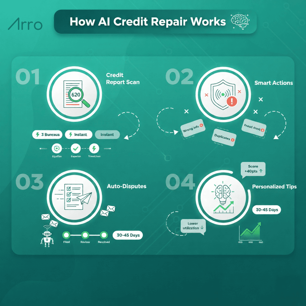 AI credit repair uses machine learning to analyze credit reports, identify errors, and automate dispute processes - making credit building faster and more accessible.