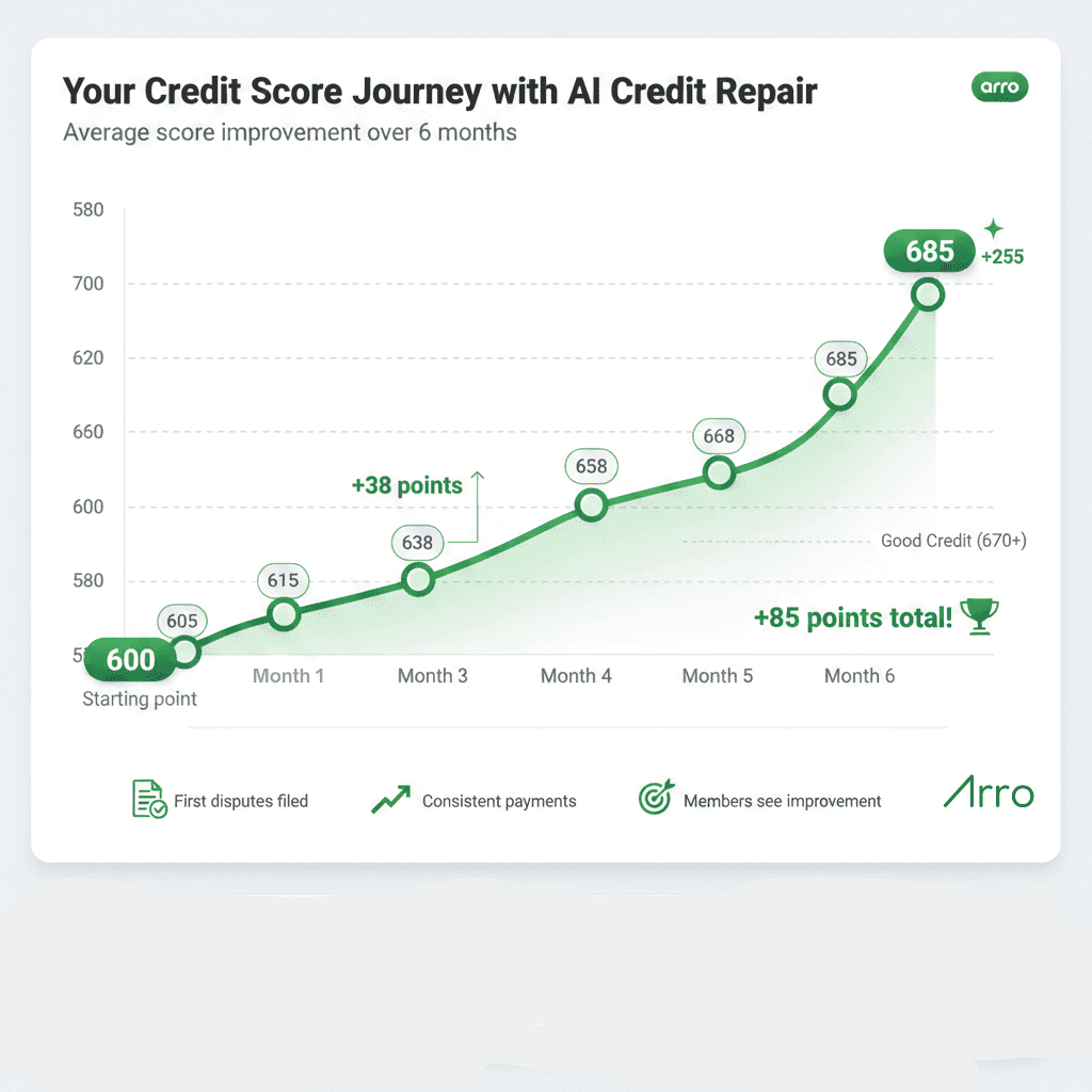 You'll see your score improvements alongside community stats - like "$4M in credit earned by Arro members" - that show you're part of a movement.