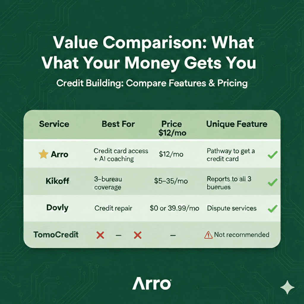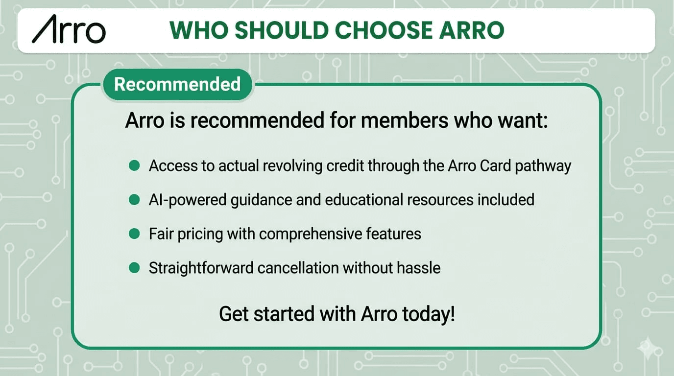 But for comprehensive credit building with guidance and card access? Arro's your best bet.