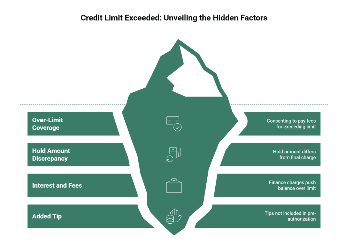 Temporary holds (e.g., at gas stations) can cause accidental overages.