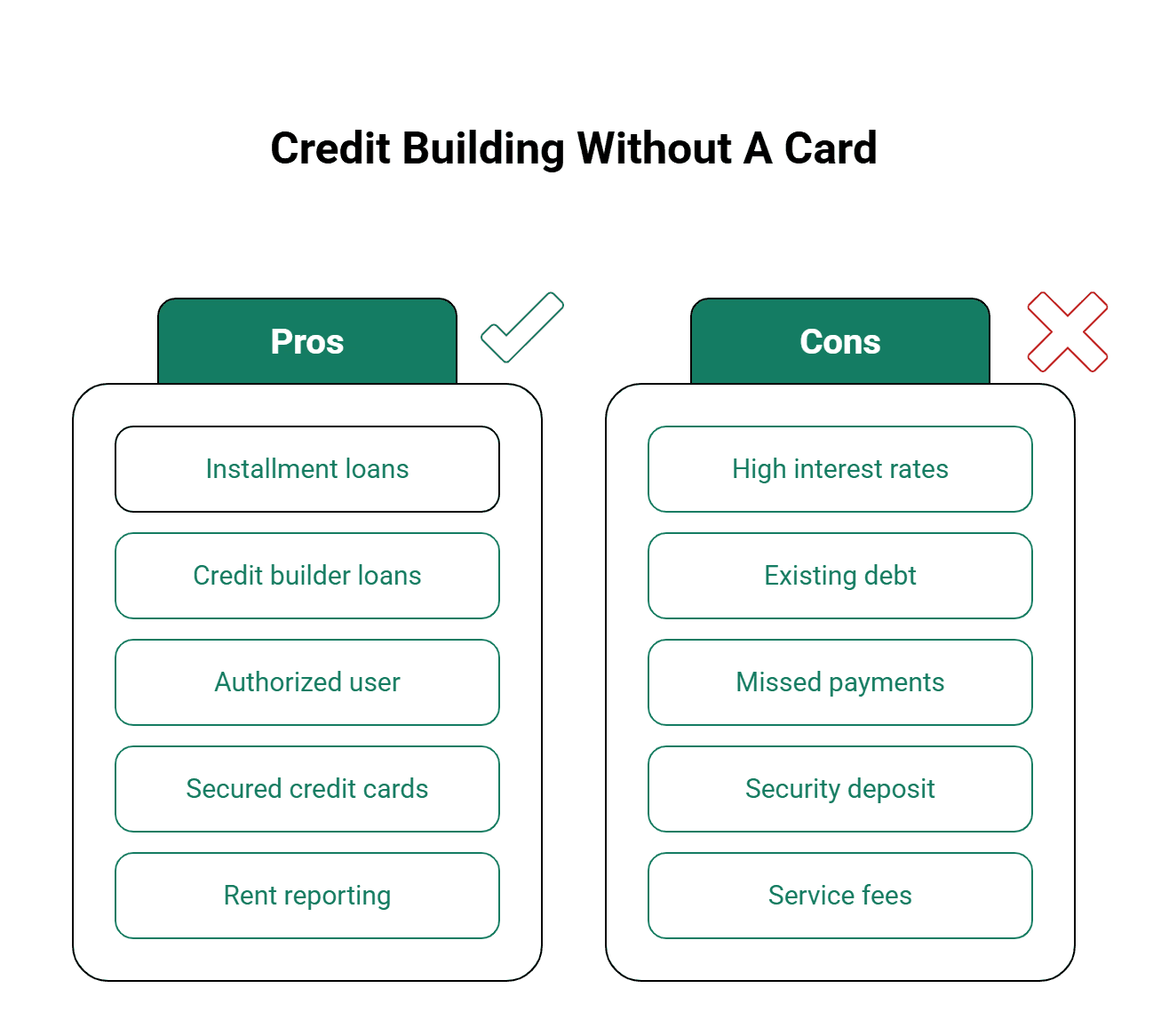 You can build credit without a credit card using credit-builder loans, rent reporting, or becoming an authorized user.