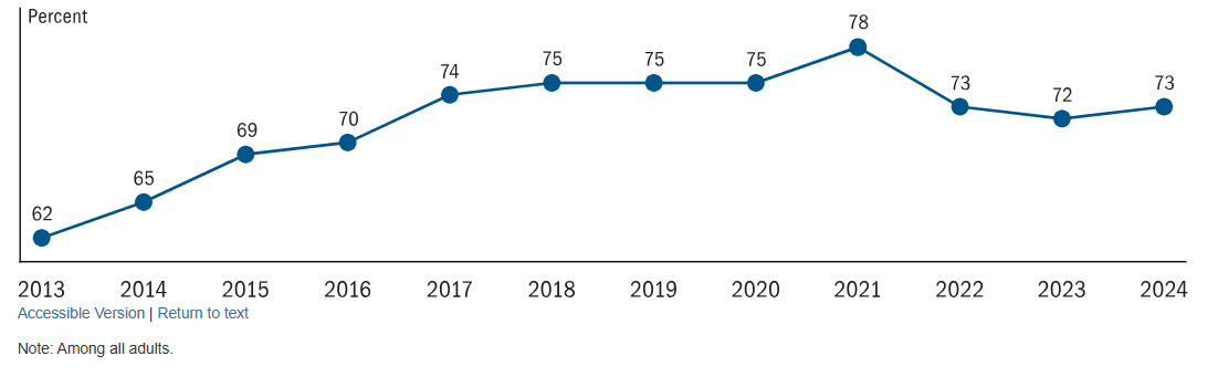 This is particularly challenging given that 73% of adults reported "doing okay" financially or "living comfortably," down from 78% in 2021, indicating that economic pressures are real and many people need access to credit to manage expenses.