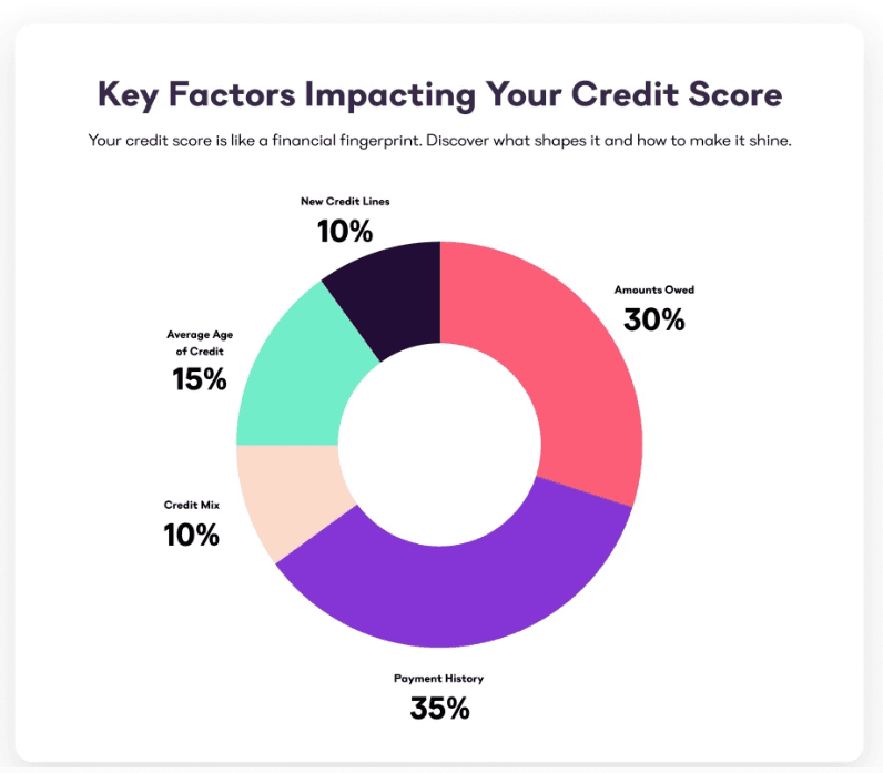 The credit score comes from five main factors: